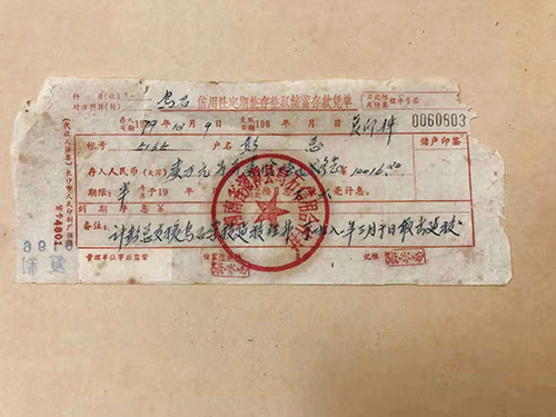 “彭总”的存单从那时起保存下来,成为一份珍贵的历史财富。