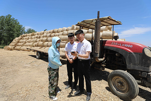 “三夏”期间,河南汝南农商银行结合“我为群众办实事”实践活动,充分发挥点多面广、贴近基层的服务优势,组织党员干部深入“三夏”生产第一线,普及金融知识、了解农户资金需求、帮助农户收粮晒粮等,着力把党史学习教育成果转化为为群众办实事的实践。截至目前,该行党员干部已对全县所有乡镇和行政村实现走访全覆盖,共投放230笔、金额5070万元支持“三夏”生产,为群众办实事、好事200多件。图为该行工作人员深入田间地头了解群众资金需求。