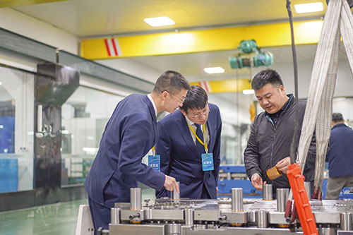 图为浙江农商联合银行辖内宁海农商银行普惠金融专员走访建欣模具,了解企业的金融需求。 通讯员 吕晴 摄