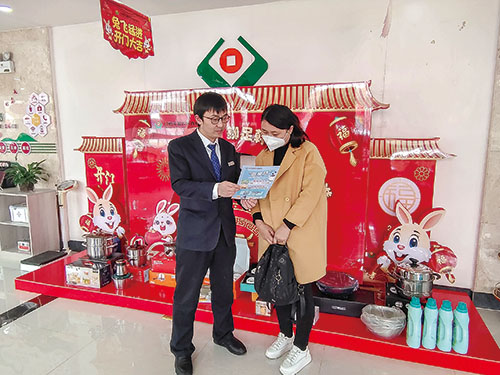 为进一步提升“晋享贷”宣传力度,近日,山西屯留农商银行针对有贷款意向的客户逐一登记,及时了解真实需求,并为客户耐心讲解贷款产品,宣传产品优势,深度挖掘客户资源,积极上门调查,提供“一对一”问诊把脉式服务,切实提升客户体验感和满意度,将金融服务产品与服务送至客户心中。图为屯留农商银行客户经理申懿(左)向等待办理业务的客户宣传讲解“晋享贷”个人小额信用贷款政策。